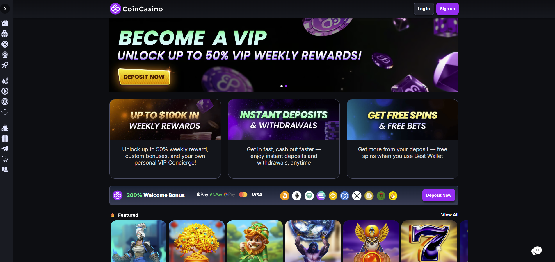 | CoinCasino | 200% up to $30,000 + 50 spins | 6x deposit per 10% release | Low – progressive release |