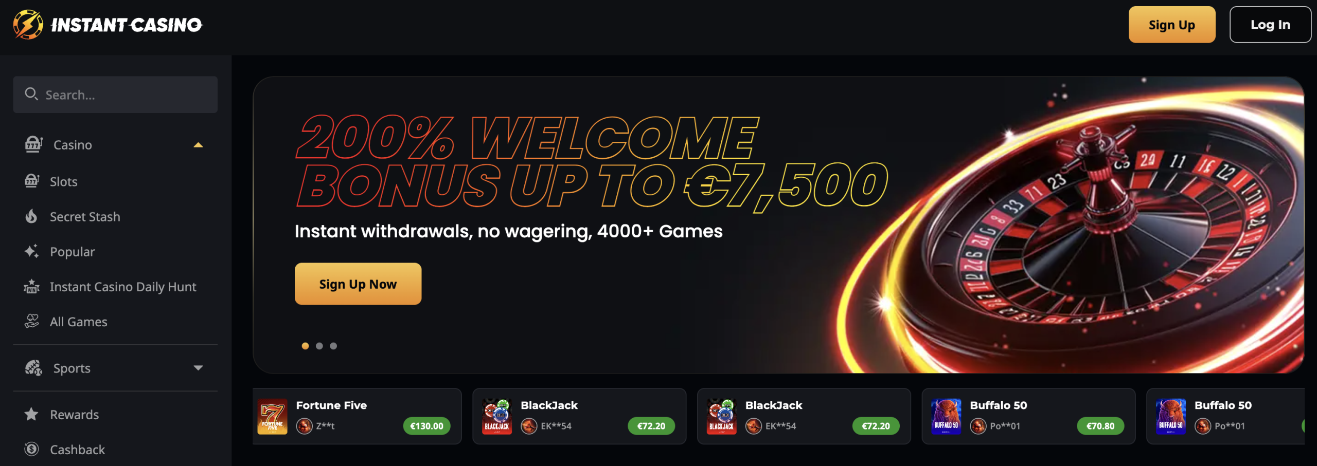 Instant Casino delivers on its name. Launched in 2024 under Curacao and Anjouan licences, it processes withdrawals instantly in supported regions – and that applies from your first payout, not after a trust-building period.